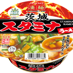 2025年3月発売の、茨城県のご当地グルメ・スタミナラーメンを再現した「茨城スタミナラーメン」。キャベツ、カボチャ、白菜、ニラの具と、もちもちの極太麺に絡む100%茨城県醸造の濃口醤油を使用し、ポークの旨みと香味野菜の風味を効かせた甘辛とろ...
