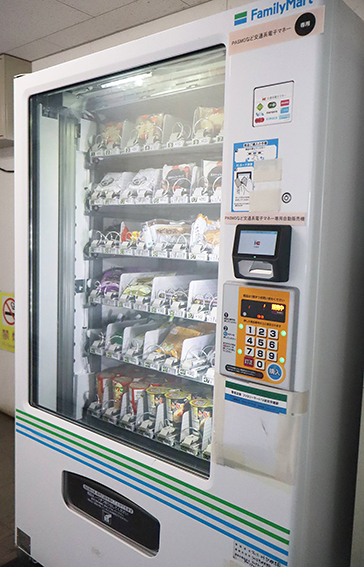 ●TXみどりの駅の切符売り場の右通路に交通系電子マネーでお菓子、おつまみが買える自販機があります。