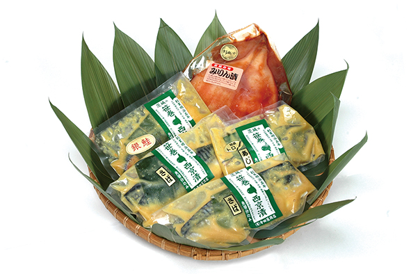 西京漬は全て手作りで鮮魚を一切れ、一切れ、特製の調味料に漬け込んで魚醤を加えることで滑らかに。さらに5日間の手もみで味にムラがなくなり、上品な味わい。切り身は、長持ちする防腐剤の役割があると昔から知られている熊笹で包み、真空パックしている。西京漬のセットはモンドセレクション8年連続最高金賞に受賞した折り紙つきの品質と味。世界初、チョウザメを水槽で完全養殖に成功した、フジキンの「キャビア・フィッシュ」とコラボした商品も数種販売。好きな商品を詰合せ、セット類も各種用意しているので、贈答品に最適。HPでも購入できる。