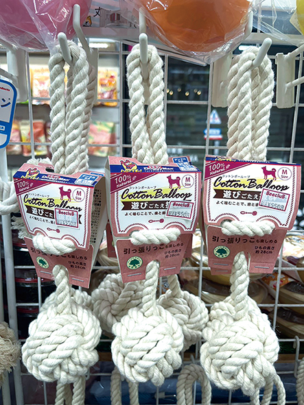 ビークラブでは、この“コットンボール”を 上から吊るして 使っています。ぶら下がる位置にあることで体に触れたり視界に入ったりし、自然とじゃれつく動きが出る。興味津々な時期の子犬にぴったり!!遊びながら歯ぐきを刺激でき、デンタルケアに役立つなんて最適だとおもいませんか!さらに、軽い引っ張りっこ遊びもできるので、楽しみながらストレス発散!!
