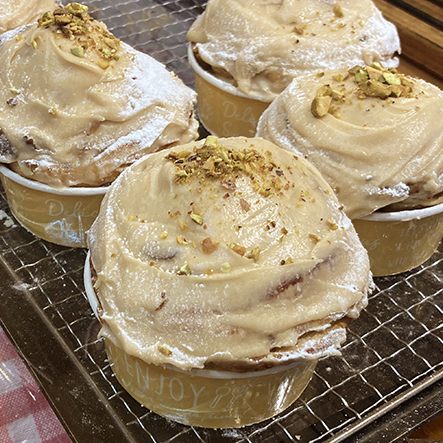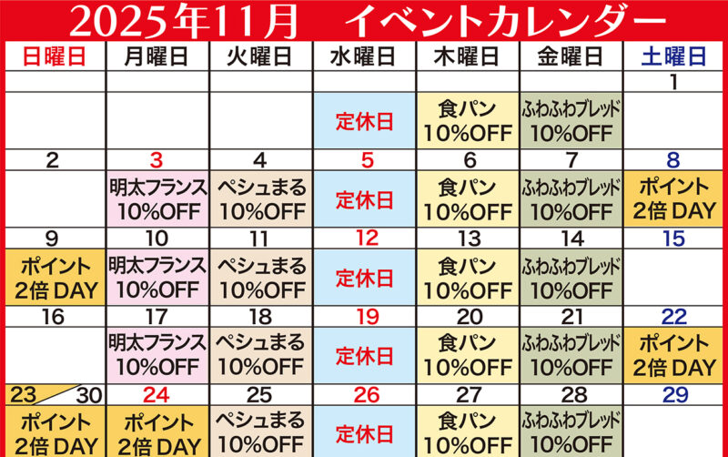 今月オススメの「マロン&マロン 400円」は、生地の中に渋皮の栗と渋皮栗のなめらかクリームがたっぷり。ナッツが香る甘いプラリネのアイシングをのせた秋を感じる一品。「ペシュ丸マロン 580円」は、しっとりふわふわ生地に栗のペーストを閉じ込め、粒を練り込んで風味豊かに。11/8(土)・9(日)と11/22(土)・23(日)・24(月・祝)はペシュのポイントが2倍に。