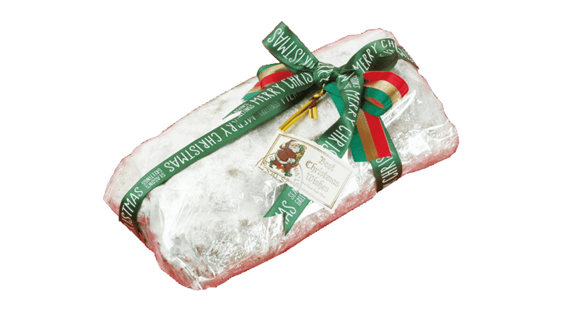 たっぷりバターの生地にドライフルーツやナッツなどが練り込まれたパン。クリスマスまで毎日スライスして食べることで、ドライフルーツなどが徐々になじんでいく過程も楽しめるドイツの伝統菓子です。