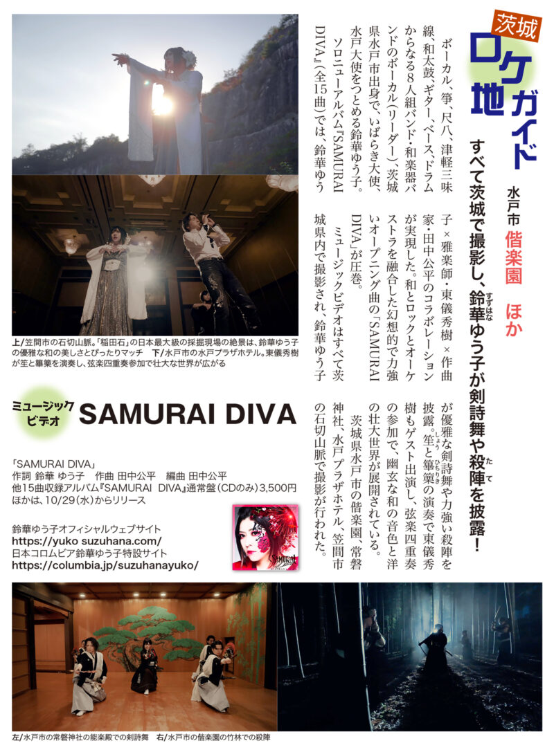 ミュージックビデオ『SAMURAI DIVA』(2025年11月号) 茨城ロケ地ガイド 2025.10.312025.11.01 ミュージックビデオ『SAMURAI DIVA』のロケ地は、【水戸市】偕楽園 ほか