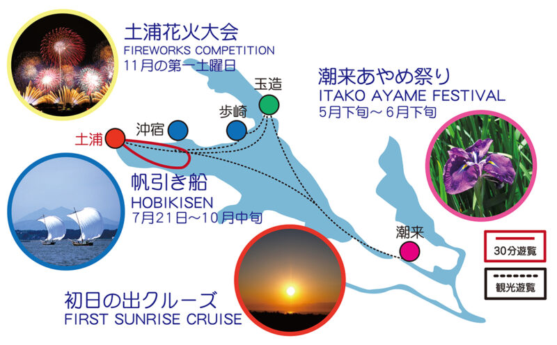 面積国内第2位の湖、霞ヶ浦を遊覧する30分クルーズ。筑波山、阿武隈山脈をはじめ、空気の澄んだ日には、日光連山や富士山もご覧いただけます。