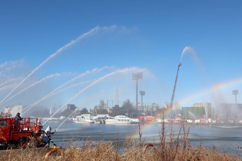 土浦市消防出初式 イベント 2025.12.26 1/10(土)8:10~11:40ごろ※雨天時は式典のみ開催土浦港周辺など(問)土浦市消防本部警防救急課TEL.029-821-0119 土浦鳶職組合による木遣り歌や梯子乗り、54台の消防車が見られる分列行進、消防車が42台並び霞ヶ浦へ放水する迫力満点の一斉放水など。10:20~10:45木遣り歌・梯子乗り(土浦市川口運動公園三帆ひろば脇プロムナード)10:50~11:05分列行進(土浦市川口運動公園周回道路)11:35~11:40一斉放水(土浦港) 霞ヶ浦への一斉放水 霞ヶ浦への一斉放水 霞ヶ浦への一斉放水