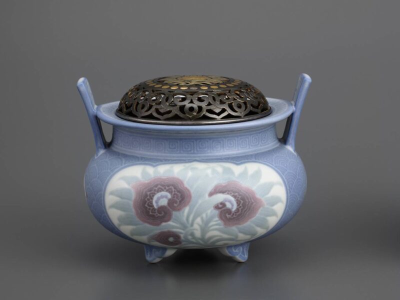板谷波山 「葆光彩磁延壽紋様香爐」 大正後期 クヴェレ美術館蔵【前期展示】