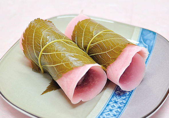 最高級ブランデーXOにしっかり漬け込んだ大人の味が自慢!左写真「ブランデーケーキ」1,600円は、想像以上に芳醇な香りが楽しめる本格派(ケーキに切れ目は入っていません)。右写真「桜もち」150円は期間限定。葛粉を使用したモチモチの皮、上質なこし餡、塩漬けの桜葉、美味しさの三重奏が楽しめる。