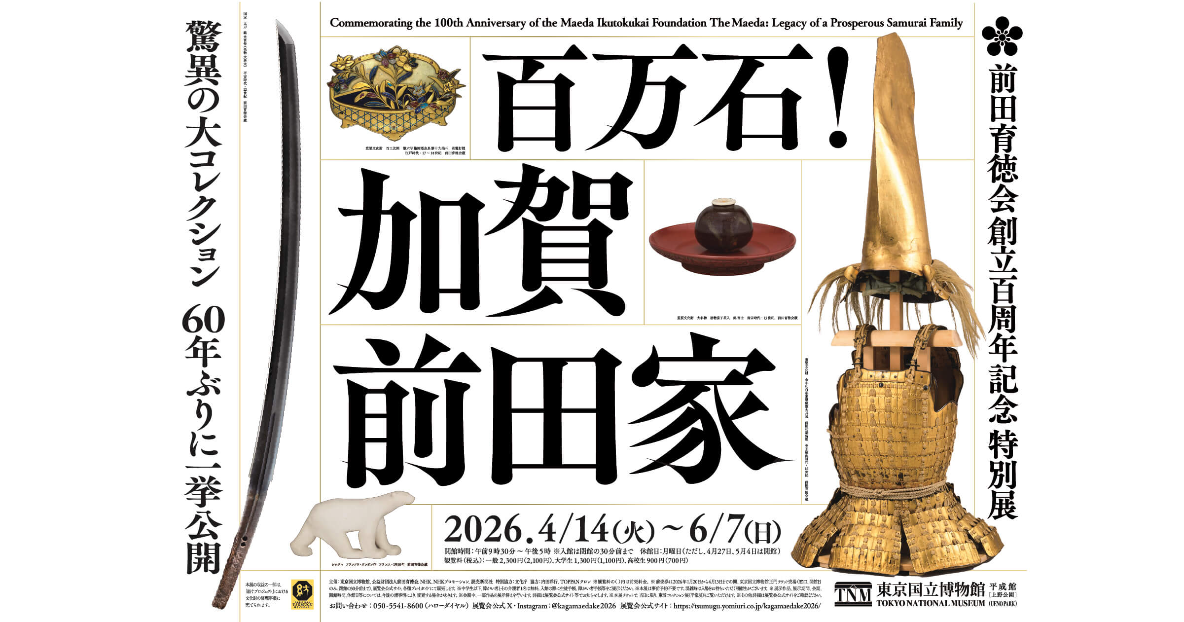 前田育徳会創立百周年記念 特別展「百万石!加賀前田家」の公式サイトです。2026年4月14日(火)~6月7日(日)まで東京国立博物館 平成館にて開催。