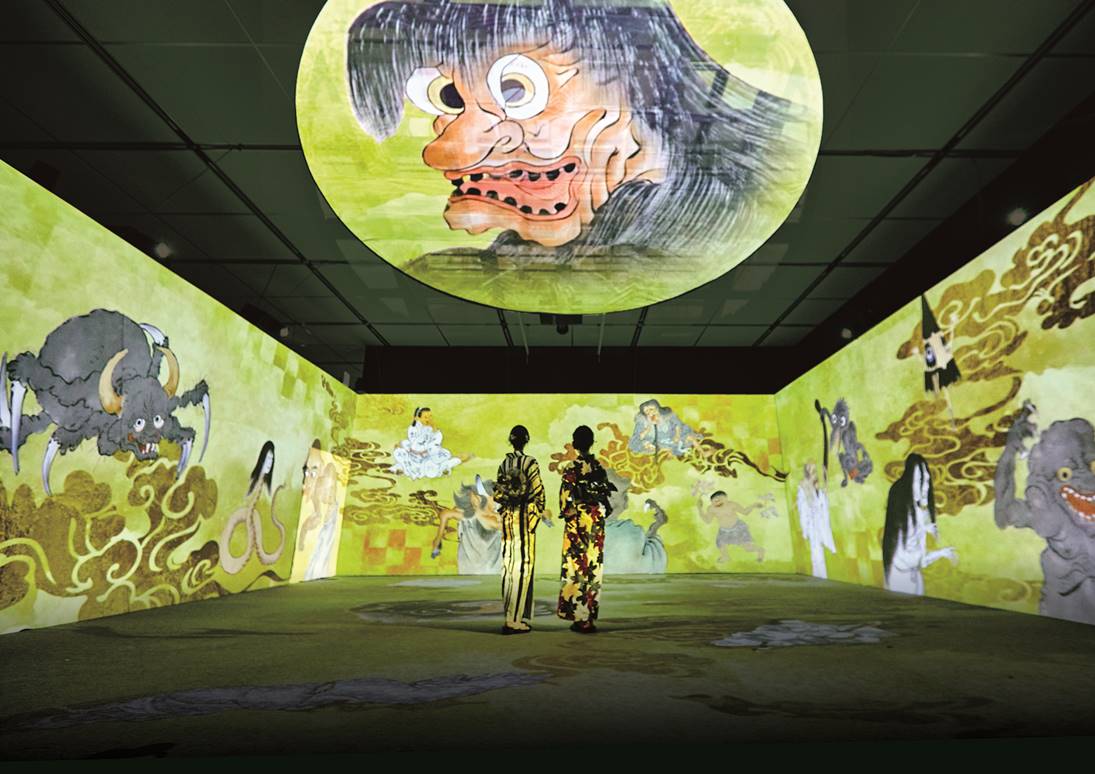 江戸・明治時代の絵師によって描かれた「百鬼夜行絵巻」「百物語」「鬼」「天狗」「河童」「付喪神」などを中心に、日本が誇る妖怪美術に最先端の映像技術と立体造形で没入できる世界初のイマーシブ体感型デジタルアートミュージアム。